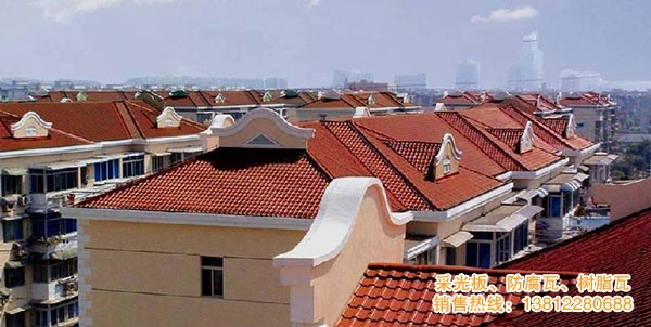 4、标准的合成树脂瓦可以长期抵御酸,碱,盐等各种化学物质腐蚀,实验浸泡盐,碱及60%以下各种酸中24小时无化学作用。劣制的合成树脂瓦面层采用其颜料会产生化学反应,甚至产生褪色。