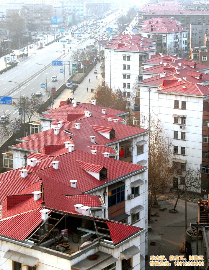 “平改坡”工程使用合成树脂瓦,可以减少对楼顶防水抗渗漏处理的反复投资。同时,“平改坡”工程使用合成树脂瓦还可以改善城市的视觉效果,美化了城市环境。